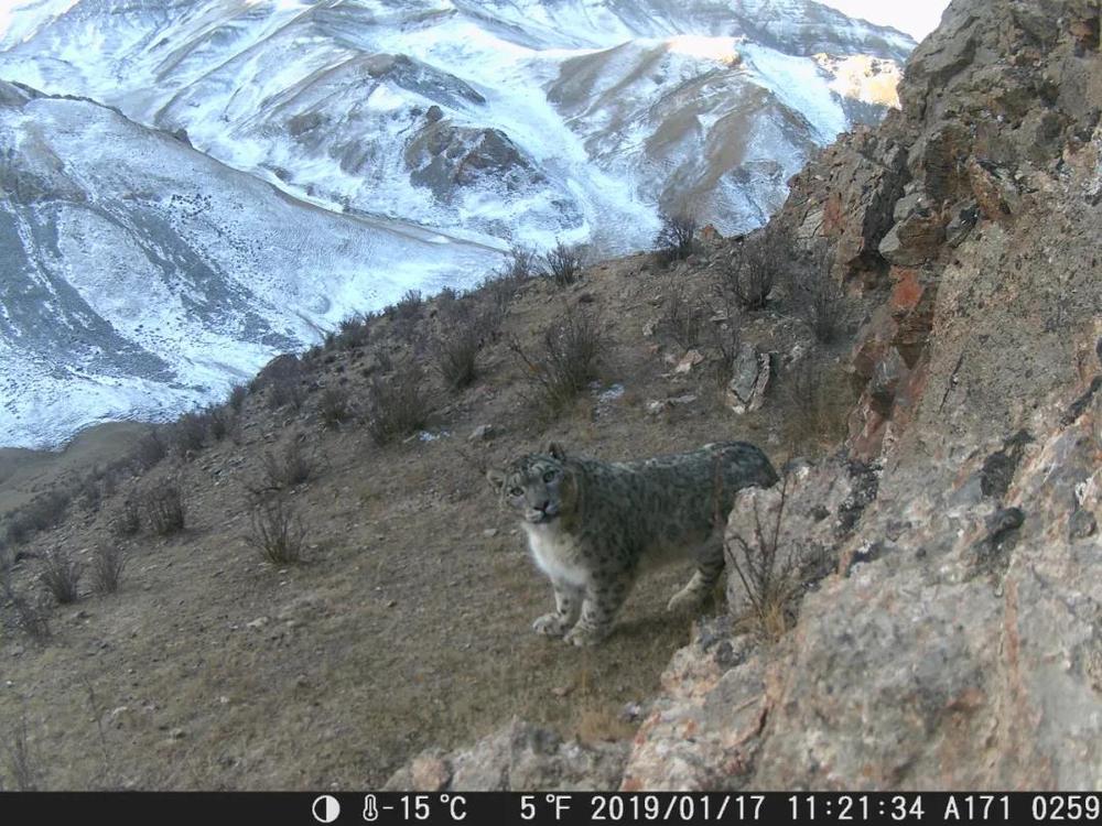 2019年1月17日,在祁連山國家公園青海片區,紅外相機拍攝到的雪豹照片。