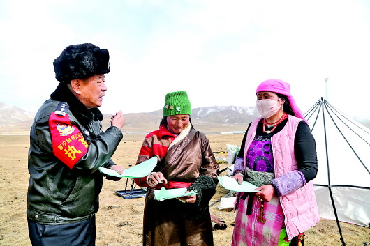 民警向沿線牧民宣傳(chuan) 法治安全常識。