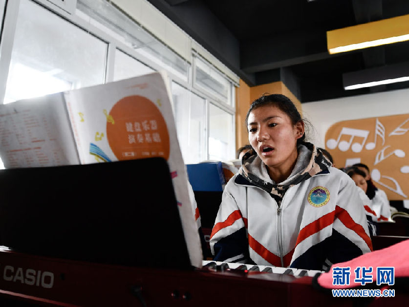 3月16日,在果洛藏族自治州職業(ye) 技術學校,2020級學前教育專(zhuan) 業(ye) 學生楊央在上音樂(le) 課。新華社記者 張龍 攝