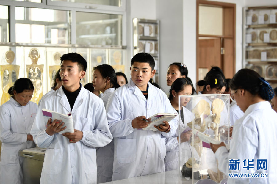 3月16日,在果洛藏族自治州職業(ye) 技術學校,2020級護理專(zhuan) 業(ye) 學生在上課。新華社記者 張龍 攝