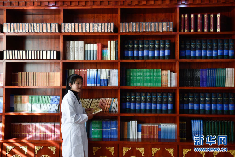 3月16日,在果洛藏族自治州職業(ye) 技術學校,2020級藏醫醫療與(yu) 藏藥專(zhuan) 業(ye) 學生德吉在借閱書(shu) 籍。新華社記者 張龍 攝