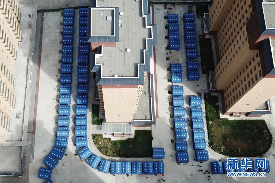 這是3月16日在舟曲縣果耶鎮磨裏村、果耶村滑坡災害應急避險臨(lin) 時安置點拍攝的安置受災群眾(zhong) 的救災帳篷(無人機照片)。新華社記者 範培珅 攝