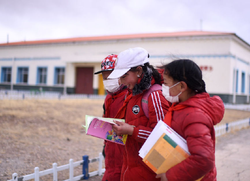 3月16日,索加鄉(xiang) 寄宿小學的一些孩子放學回家。新華社記者 張宏祥 攝