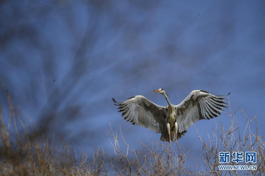 翩然起舞的蒼鷺。新華網 卡婭梅朵 攝