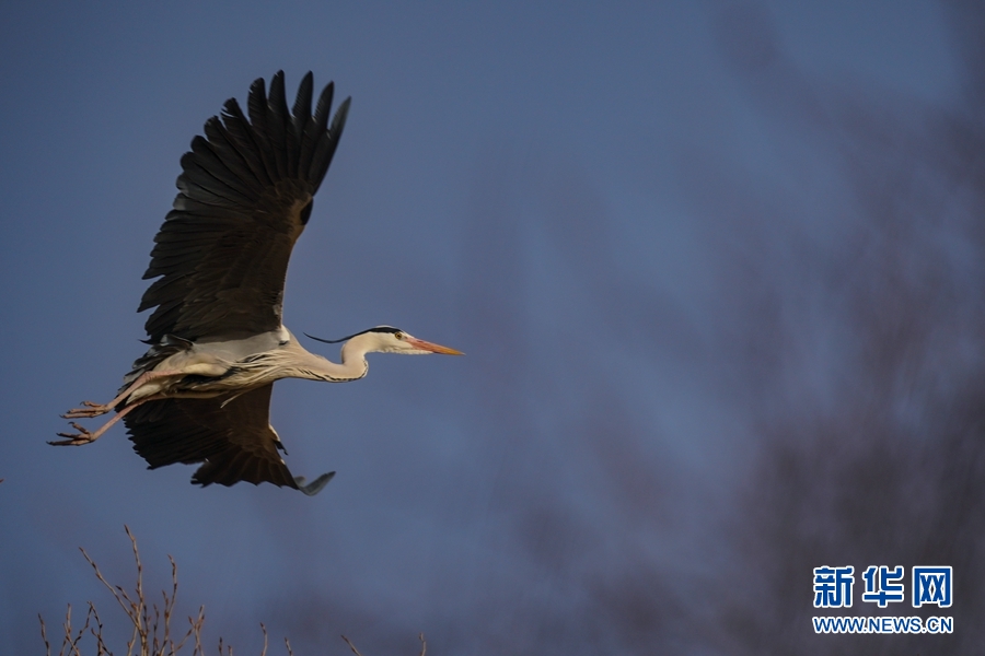 翩然起舞的蒼鷺。新華網 潘彬彬 攝