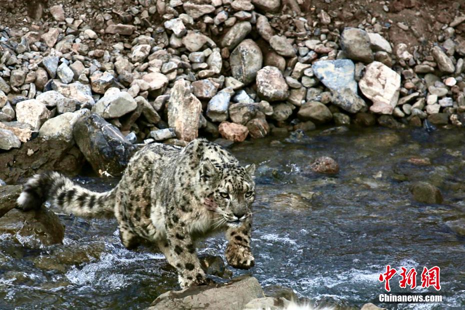 瀾滄江源區生態管護、體驗者拍雪豹渡河珍貴畫麵