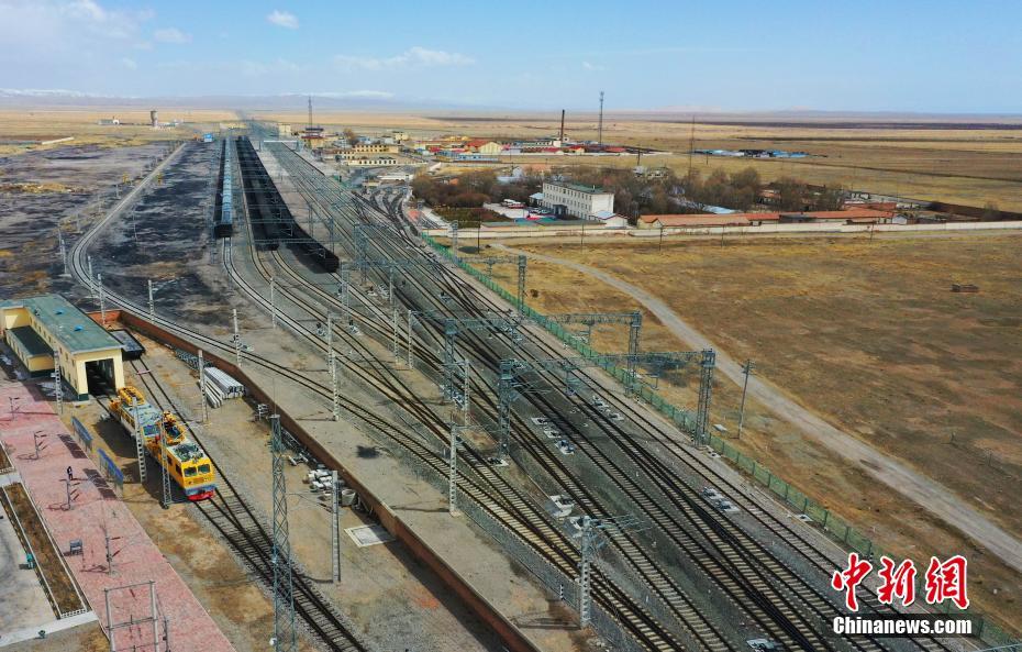 4月13日,青海省海北藏族自治州剛察縣,航拍青藏鐵路公司西寧供電段哈爾蓋工區負責維護的部分鐵路。中新社記者 馬銘言 攝