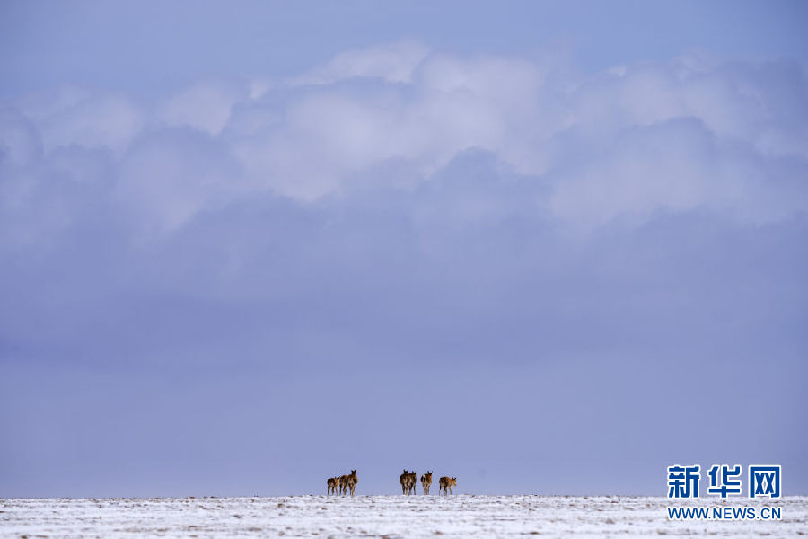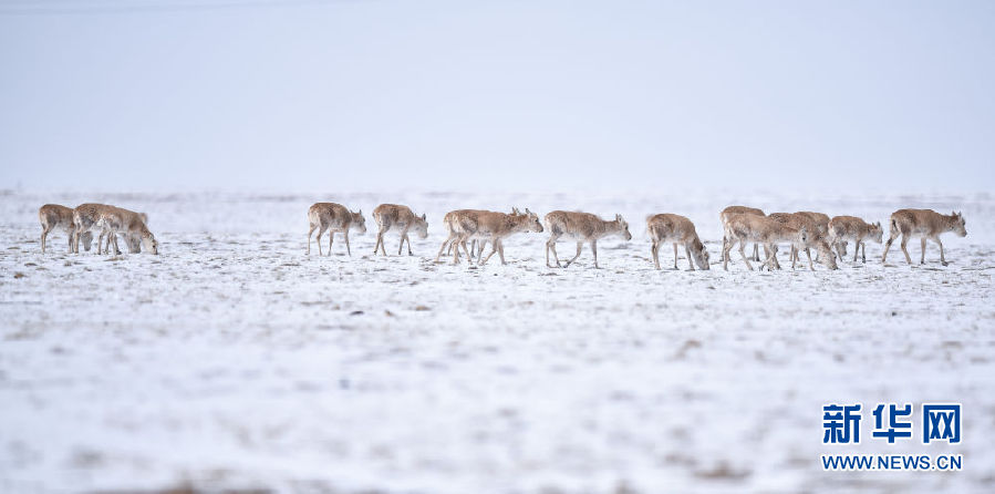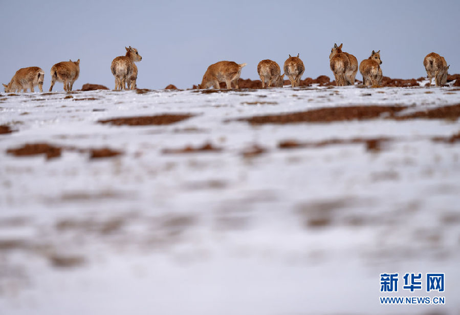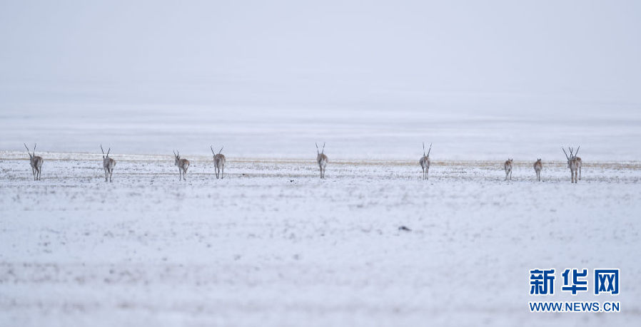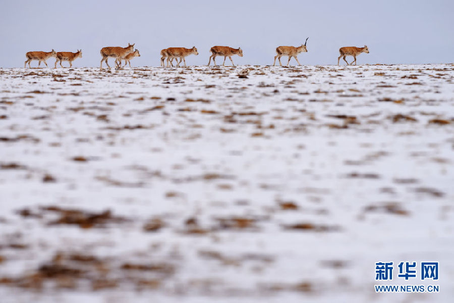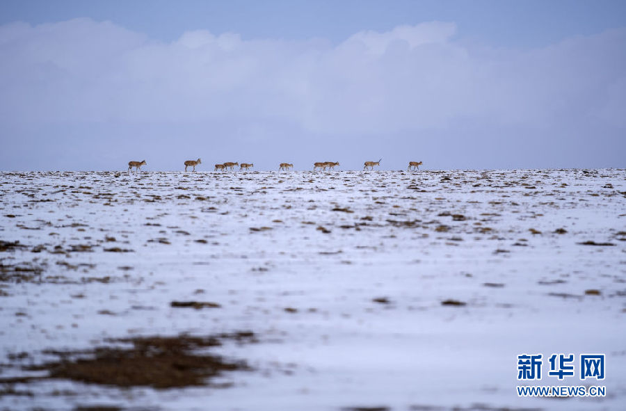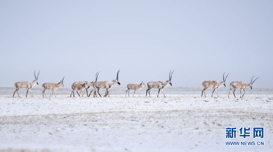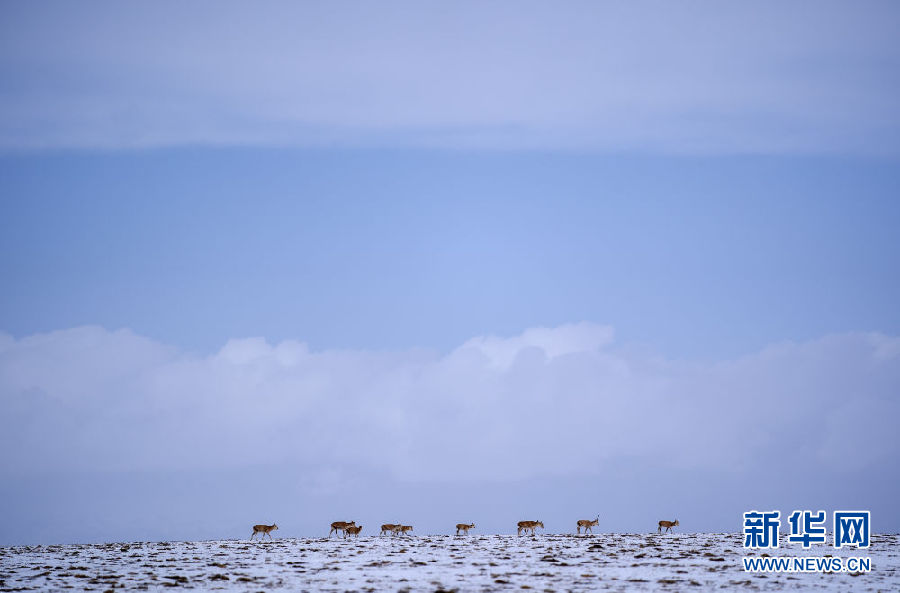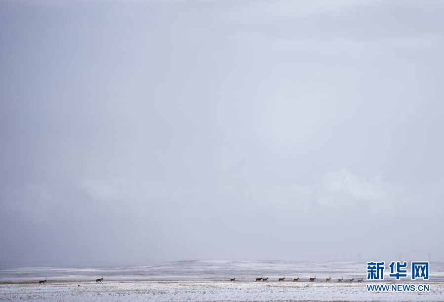 近日,可可西裏迎來降雪,大量藏羚羊匯聚在可可西裏五道梁地區,踏上遷徙之路。