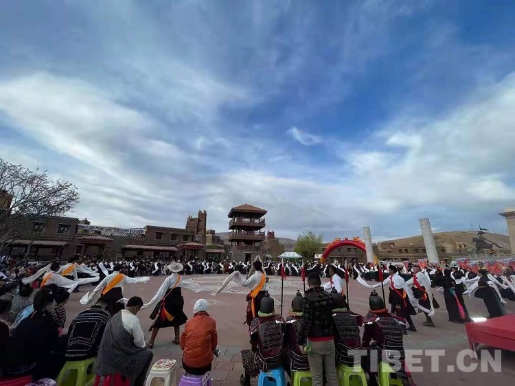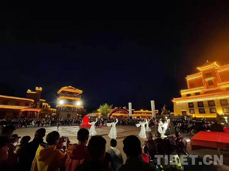 圖為(wei) 四川省甘孜州甘孜縣格薩爾王城文化廣場上的歌舞表演