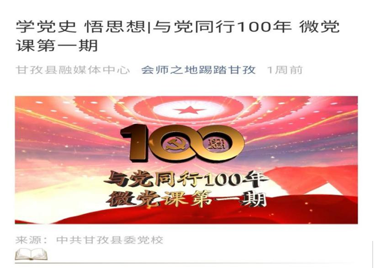 其中,甘孜縣委黨(dang) 校的黨(dang) 史學習(xi) 教育“微黨(dang) 課”視頻一經推出,便得到廣大黨(dang) 員的認可和好評。
