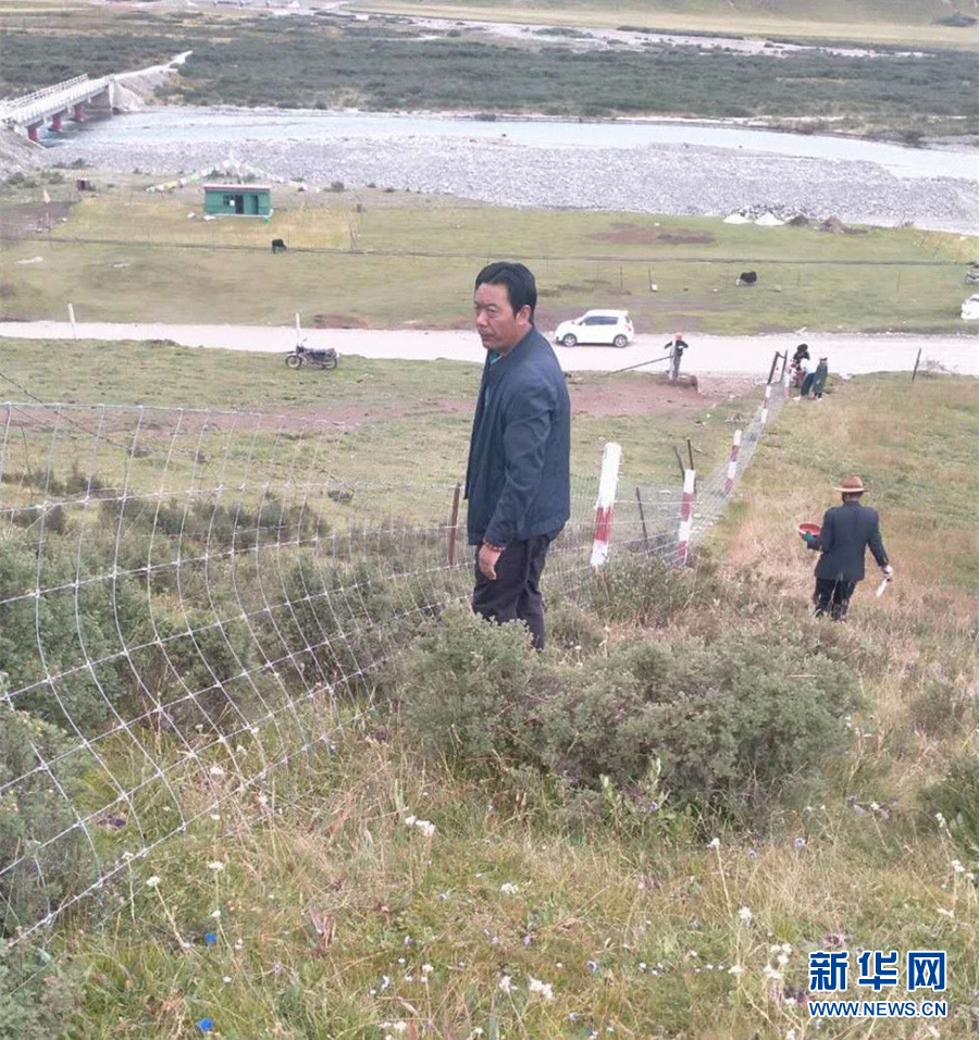 圖為(wei) 護林員在清理草叢(cong) 中的垃圾。(圖片由瑪沁縣東(dong) 傾(qing) 溝鄉(xiang) 政府提供)
