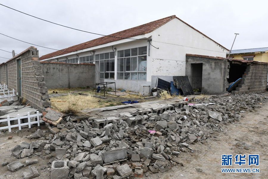 這是記者在5月22日在震區瑪多縣拍攝到的損毀房屋。(新華社記者 張龍攝)