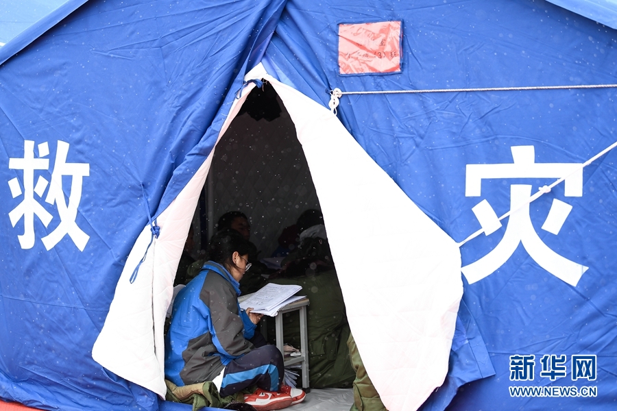 5月23日,記者在青海省果洛藏族自治州瑪多縣民族寄宿製中學救災安置點了解到,該安置點九年級與(yu) 六年級的164名學生在帳篷教室逐步複課。