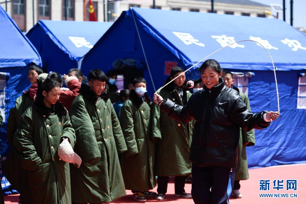 5月24日,曲邁卓瑪在課間與(yu) 同學們(men) 一起跳繩。新華社 張龍 攝