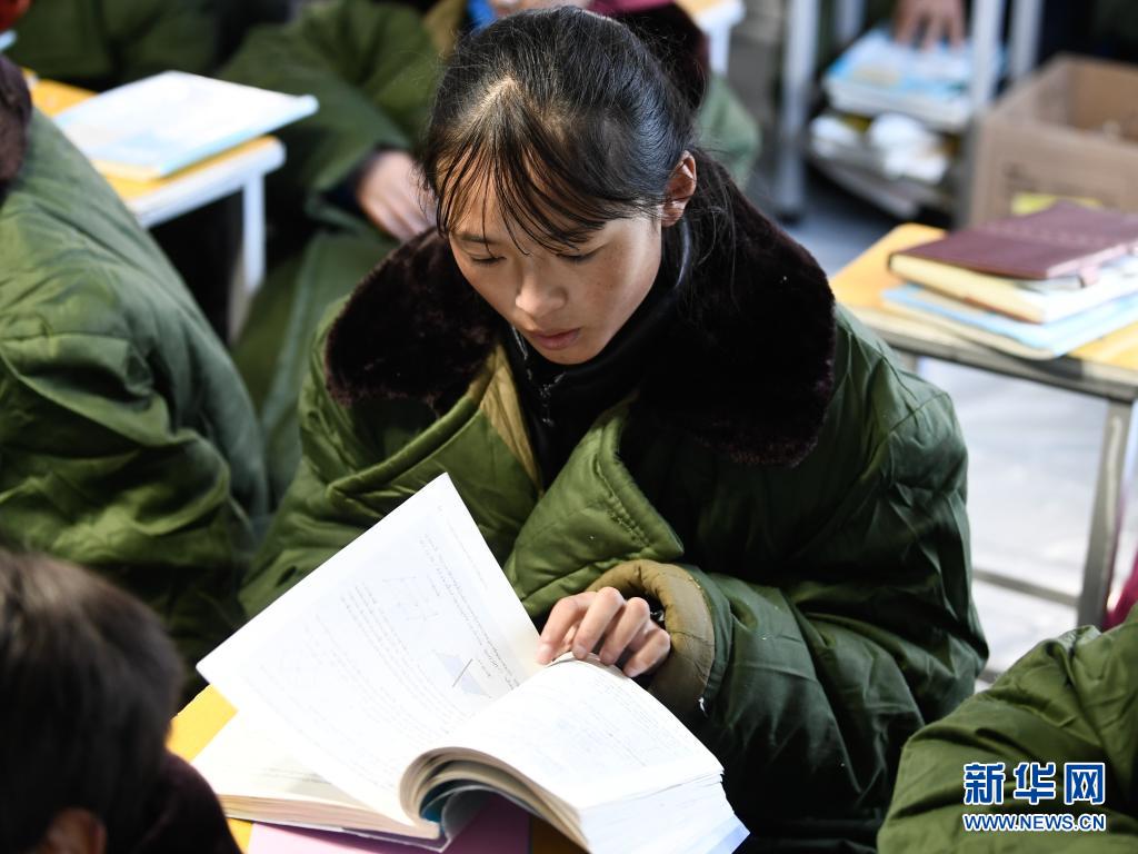 5月24日,曲邁卓瑪在瑪多縣民族寄宿製中學帳篷教室裏讀書(shu) 。新華社 張龍 攝