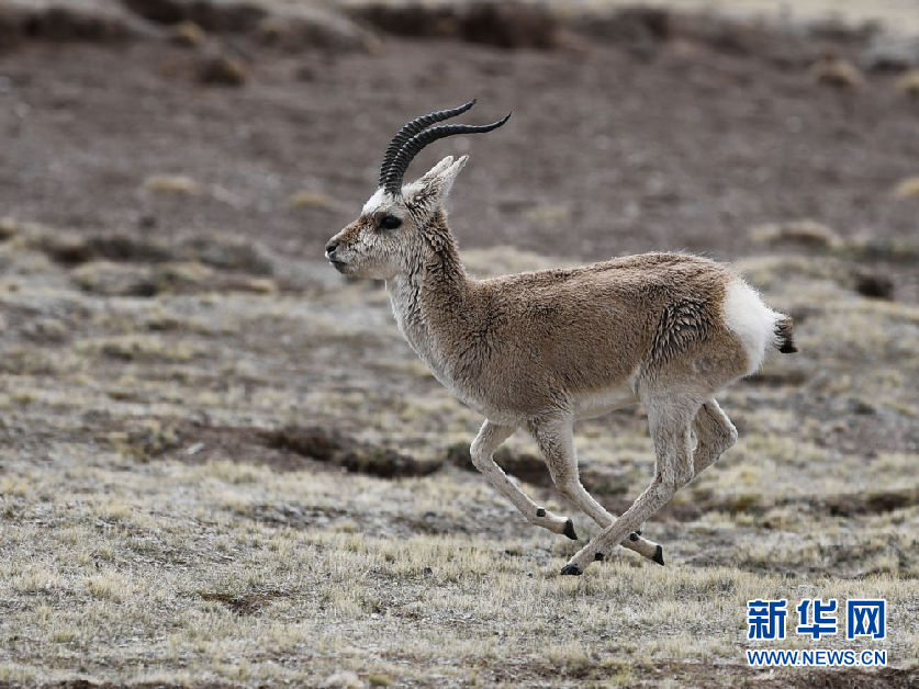 5月25日,一隻藏原羚在三江源國家公園黃河源園區內(nei) 奔跑。新華社記者 張龍 攝