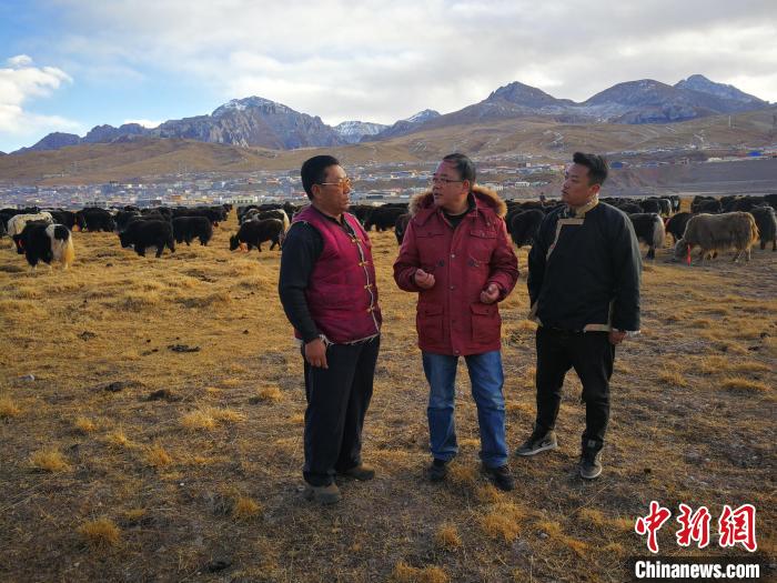圖為(wei) 宋仁德(中)在牧區查看犛牛養(yang) 殖情況。受訪者供圖