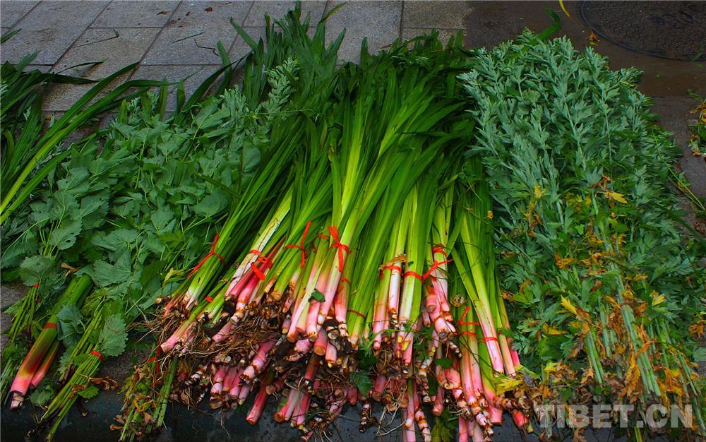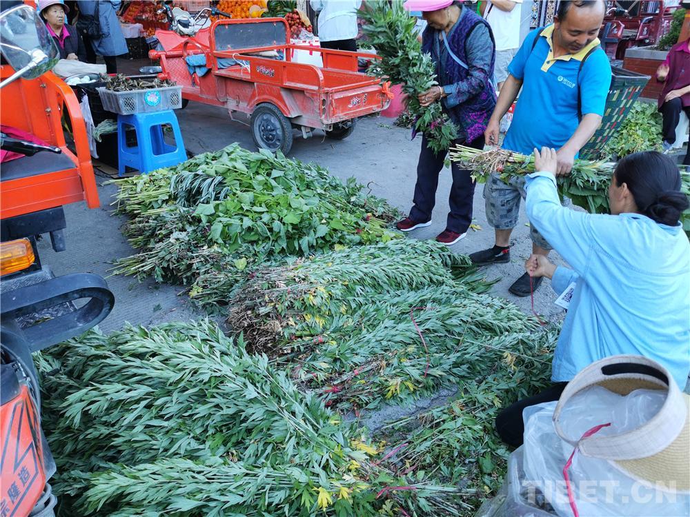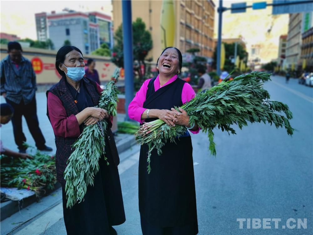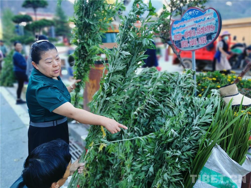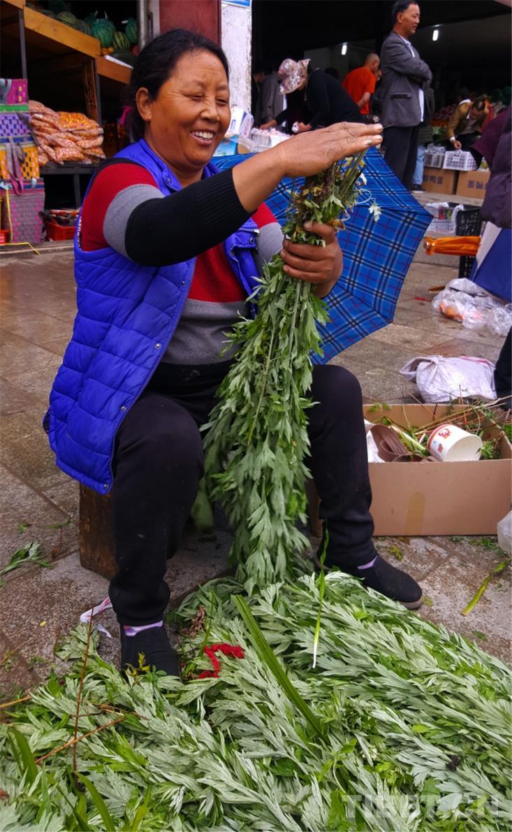 圖為(wei) 藏族婦女懷抱剛買(mai) 的菖蒲、艾葉