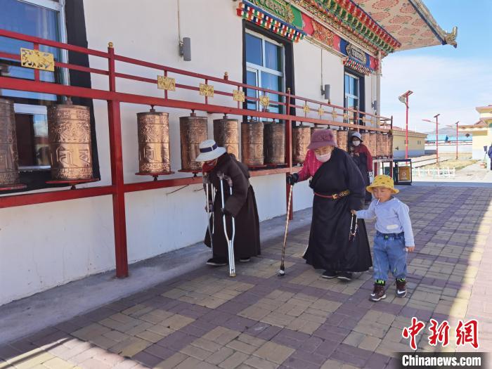 上午十點,長江源頭的青海玉樹治多縣幸福敬老院內(nei) ,陽光靜靜普照小廣場,金色轉經筒邊身著藏袍的老人彎腰拄拐,牽著吃糖的孩子悠悠踱步,遠處皚皚雪山起伏。