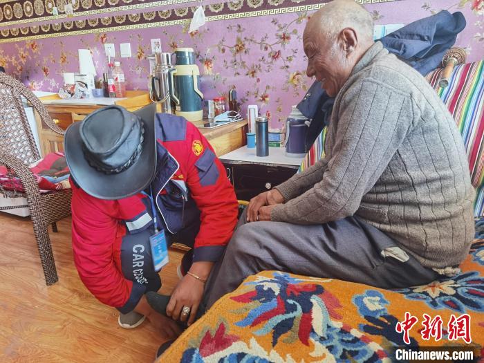 沙加梅老人曾兩(liang) 度因重病轉移至省會(hui) 西寧住院,護工歐江和搭檔日夜輪守在病床前,給他喂藥、穿衣、擦身、按摩、泡腳,背著他下床行動。