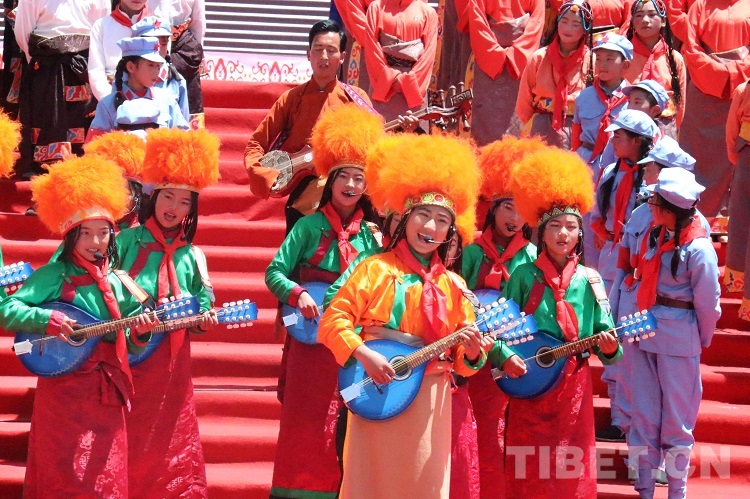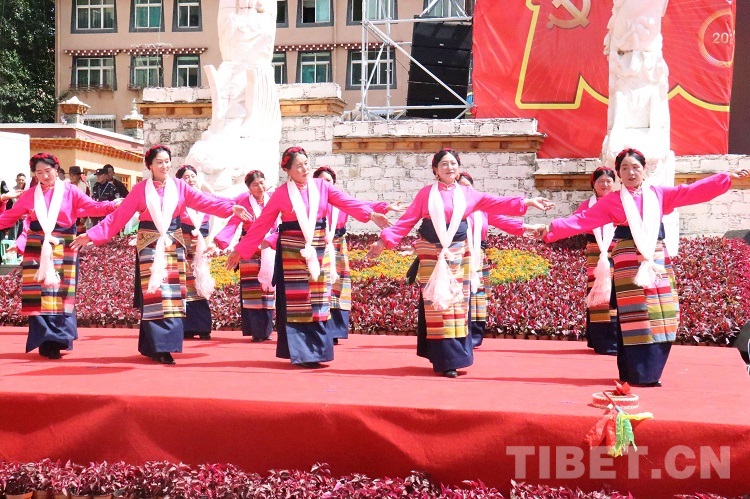 活動現場,黨(dang) 旗國旗飄揚、哈達傳(chuan) 情,在一片歡騰的海洋裏,大家載歌載舞齊唱光輝歲月,放聲歌頌幸福美好生活,盡情抒發高城兒(er) 女的愛黨(dang) 愛國情懷。歌曲《翻身農(nong) 奴把歌唱》《草原上升起不落的太陽》,穿插吉祥老人頌詞和舞蹈。表達高原兒(er) 女在中國共產(chan) 黨(dang) 的領導下,翻身獲得解放,掌握了自己的命運。短短幾十年的發展過程,涉藏州縣迎來騰飛,經濟社會(hui) 發生了翻天覆地的變化,與(yu) 祖國同步實現全麵小康。