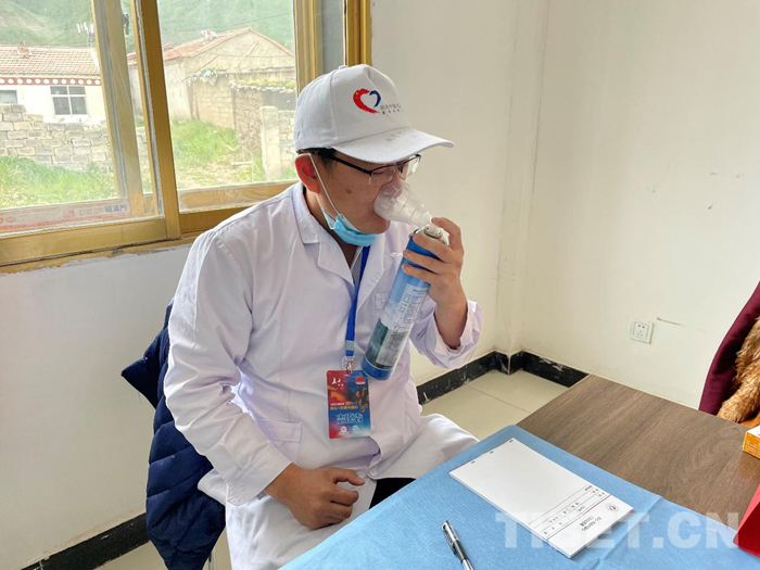圖為(wei) 石少輝大夫在吸氧(組委會(hui) 供圖)
