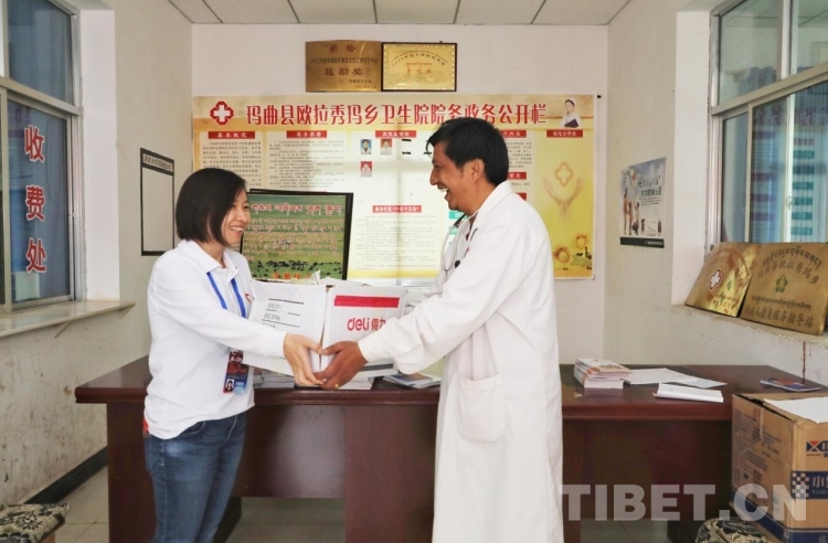 圖為(wei) 2018年誌願者劉雅梅在瑪曲縣歐拉秀瑪鄉(xiang) 全程參與(yu) 藥品發放和後勤工作