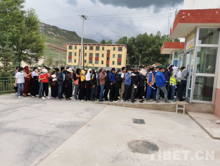 圖為(wei) 果洛藏族自治州瑪沁縣拉加鎮衛生院排隊等候義(yi) 診的當地群眾(zhong)