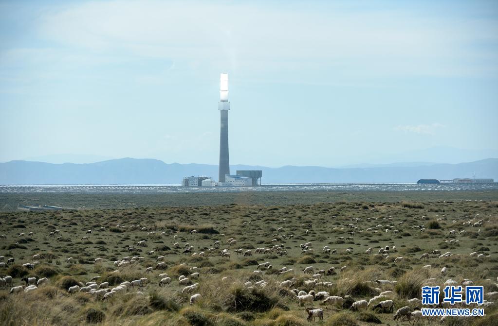 7月8日在青海省海南藏族自治州共和縣光伏產(chan) 業(ye) 園拍攝的一處塔式光熱發電項目。新華社 張曼怡 攝