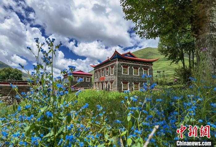 花叢(cong) 中的藏式民居。劉忠俊 攝