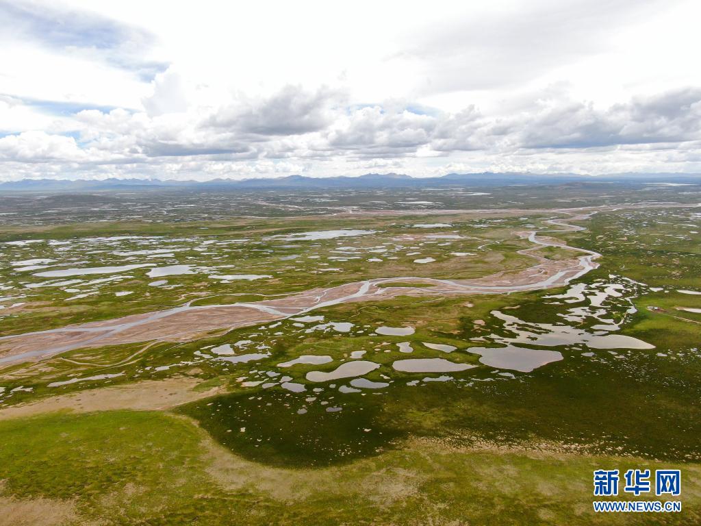 這是7月23日拍攝的長江源地區的查旦濕地(無人機照片)。新華社記者 張龍 攝