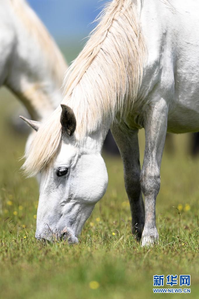 這是7月15日在甘肅瑪曲縣河曲馬場拍攝的河曲馬。新華社記者 陳斌 攝