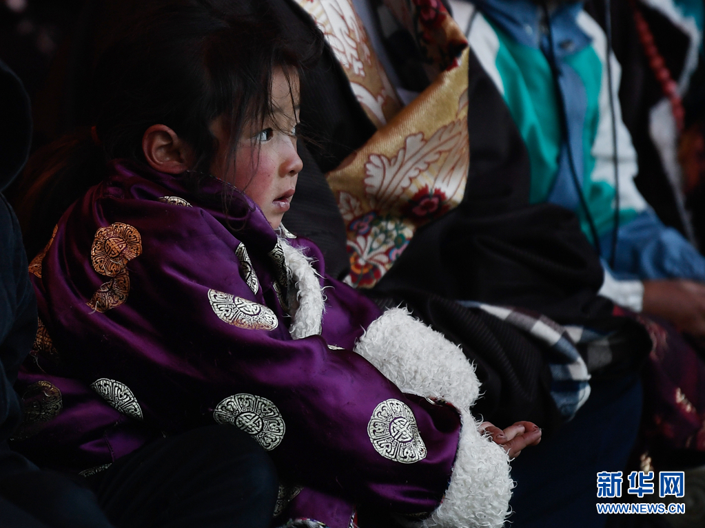 8月3日,小朋友在瑪沁縣當洛鄉(xiang) 貢龍村的夏季草場上看電影。新華社記者 張龍 攝