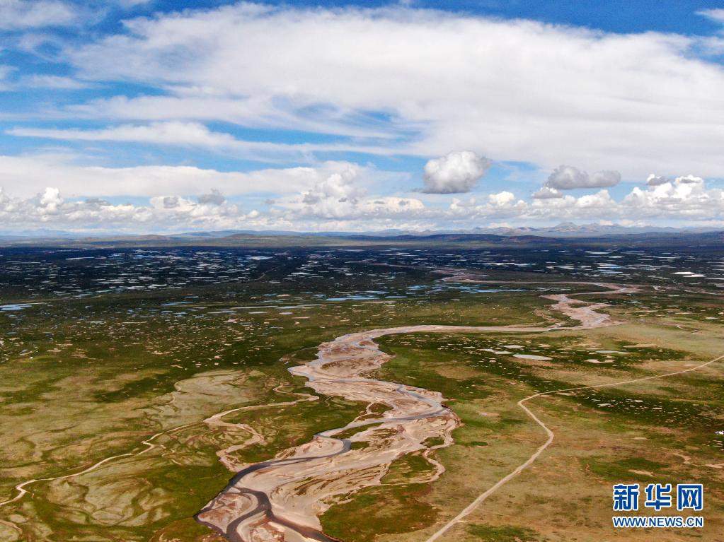 這是7月23日拍攝的長江源地區的查旦濕地(無人機照片)。新華社記者 張龍 攝