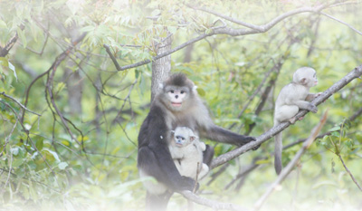 成年滇金絲(si) 猴和兩(liang) 隻幼崽。和鑫明 攝