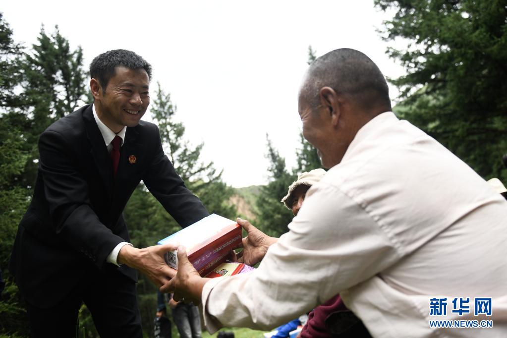 8月7日,班瑪縣人民法院工作人員向牧民發放法治宣傳(chuan) 資料。新華社記者 李占軼 攝