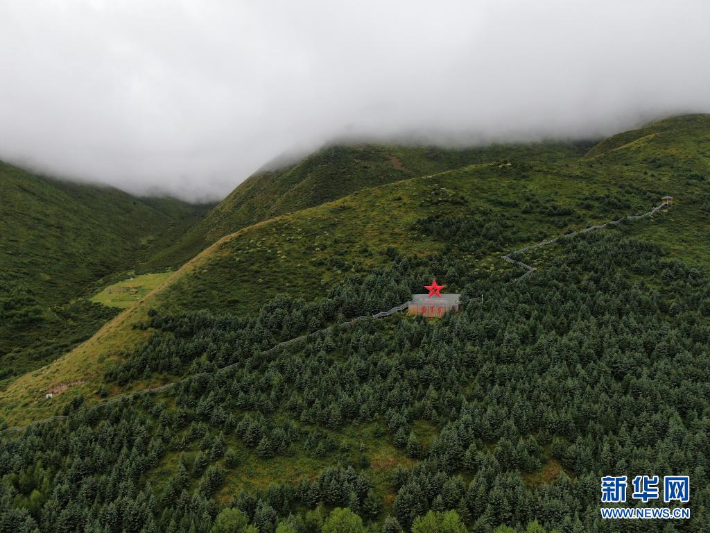 8月8日在青海省果洛藏族自治州班瑪縣境內(nei) 拍攝的一處觀景台(無人機照片)。新華社記者 李占軼 攝