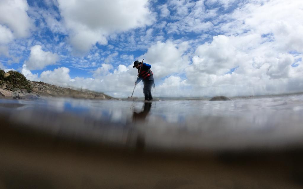 在青海省玉樹藏族自治州治多縣,長江科學院高級工程師李偉(wei) 在科欠曲采集魚類樣本。新華社記者 吳剛 攝