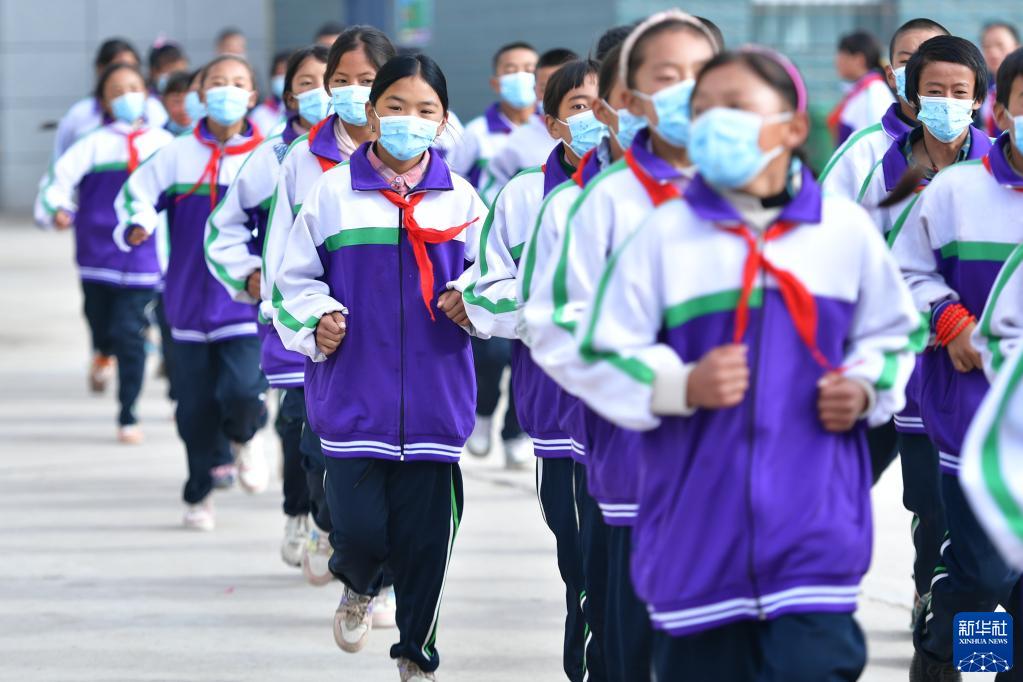 9月1日,在位於(yu) 果洛藏族自治州瑪沁縣的瑪多地震災後過渡安置一校區,學生在跑步。新華社記者 張龍 攝