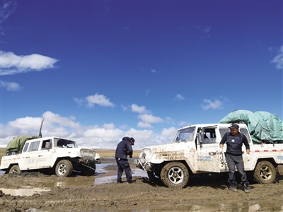布周:我感覺這幾年巡山的難度越來越大,尤其是5月-10月間。全球氣候變暖,降雨量增加,凍土層易融化形成爛泥灘,進山就變得困難重重,過去陷車挖到1米深就能見到凍土,現在要挖到1.5到2米深。我們(men) 隻能多帶麻袋裝上土,挖到一定程度就開始墊麻袋。巡山的車用的是皮卡和北汽戰旗,車身輕,比較容易抬出來。