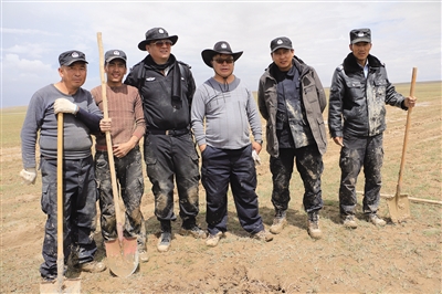 可可西裏保護區工作人員在巡山途中。右三為(wei) 布周。可可西裏管理處供圖