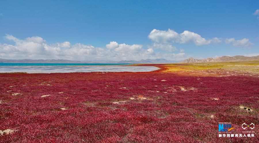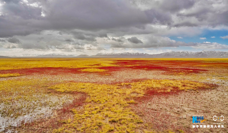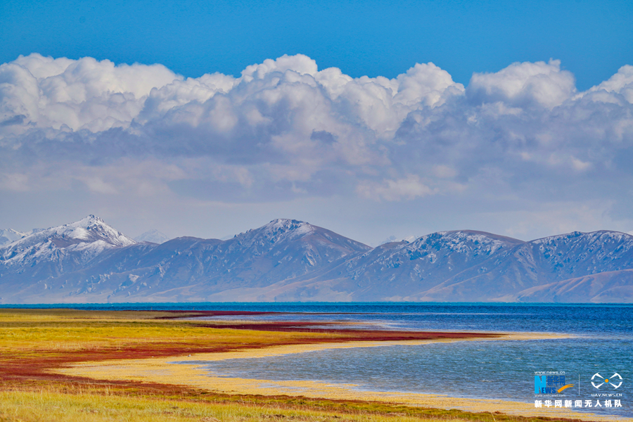 冬格措納湖位於(yu) 青海省果洛藏族自治州瑪多縣境內(nei) ,海拔4000米以上。秋日的冬格措納湖,湖水湛藍、天空遼闊,湖畔的草地紅綠黃交融,一幅大自然的美麗(li) 畫卷在這裏展開。新華網 宋忠勇 攝