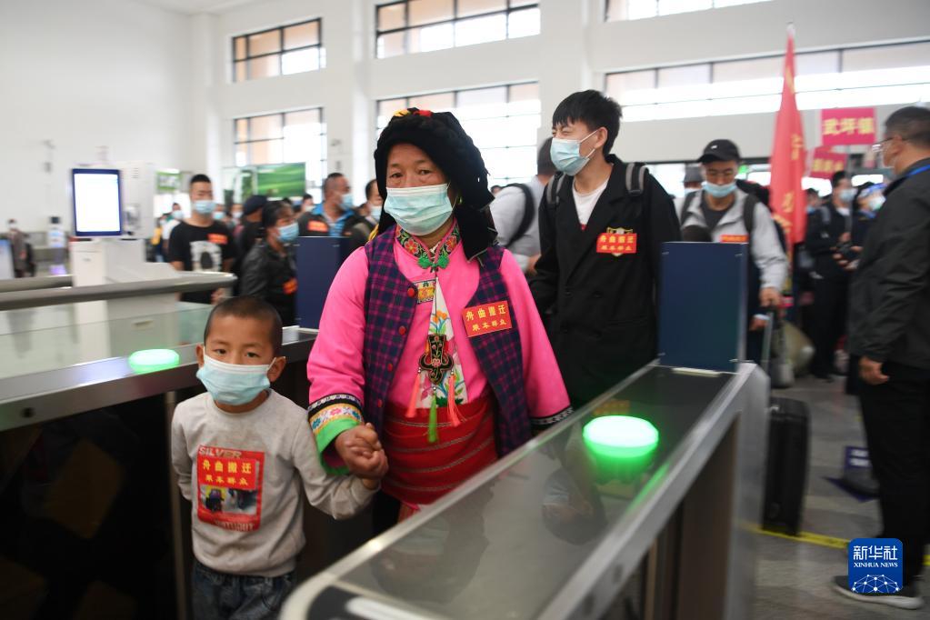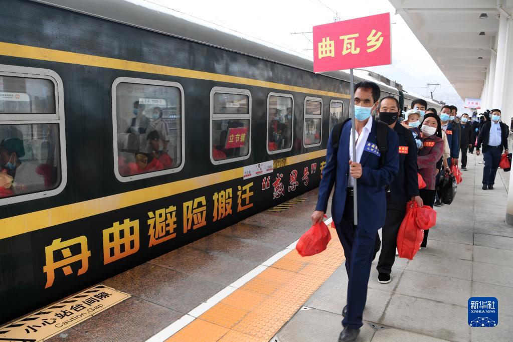 當日,甘肅省甘南藏族自治州舟曲縣9個(ge) 鄉(xiang) 鎮的200戶500餘(yu) 名居民乘坐中國鐵路蘭(lan) 州局集團有限公司開行的舟曲避險搬遷“感恩號”專(zhuan) 列前往蘭(lan) 州新區安家。據介紹,今年以來,甘肅省啟動舟曲縣地質災害避險搬遷工作,計劃年底前搬遷770戶2960人到蘭(lan) 州新區安家,此次搬遷的200戶居民是首次借助鐵路專(zhuan) 列運輸形式實施搬遷。