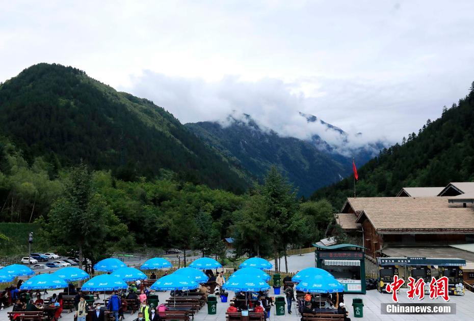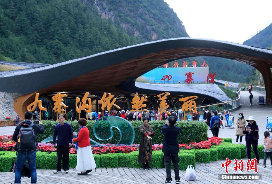 圖為(wei) 9月27日,四川阿壩,遊客在九寨溝門前拍照留影。王磊 攝