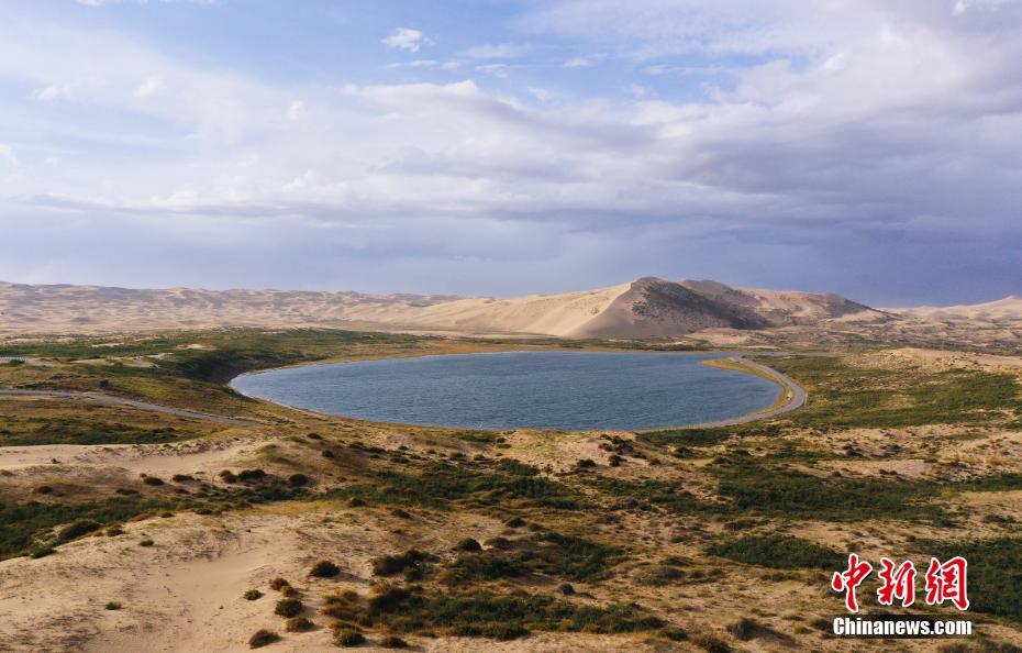 9月27日,航拍青海省海北藏族自治州海晏縣關(guan) 停的青海湖沙島景區內(nei) 的太陽湖。(無人機照片) 中新社記者 馬銘言 攝
