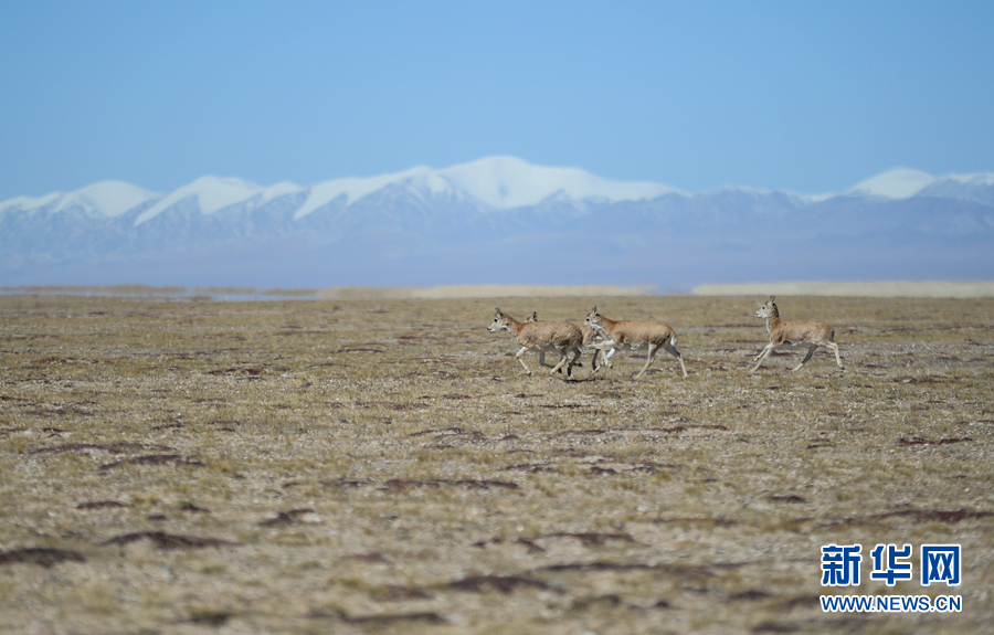 幾隻藏羚羊在可可西裏地區奔跑(9月28日攝)。新華社記者 嚴(yan) 賦憬 攝