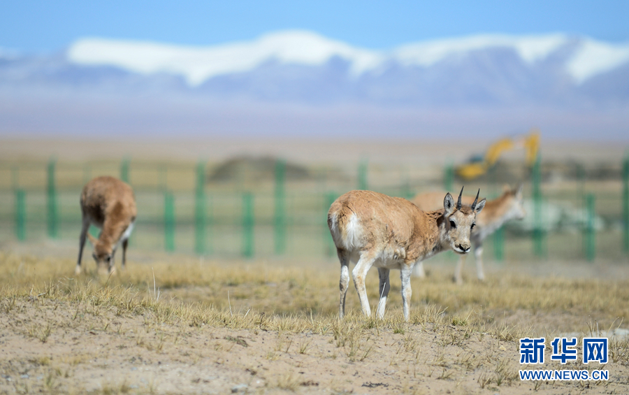 在可可西裏國家級自然保護區索南達傑保護站,幾隻藏羚羊在野生動物救助中心活動(9月28日攝)。新華社記者 嚴(yan) 賦憬 攝