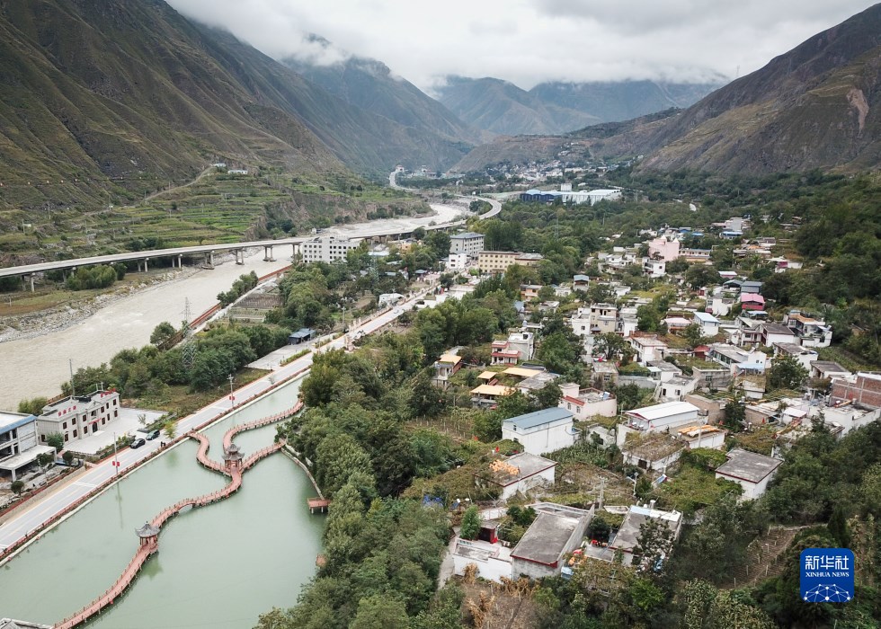 這是10月13日拍攝的有“康養(yang) 小鎮·葡萄之鄉(xiang) ”之稱的舟曲縣大川鎮土橋子村(無人機照片)。新華社記者 馬希平 攝