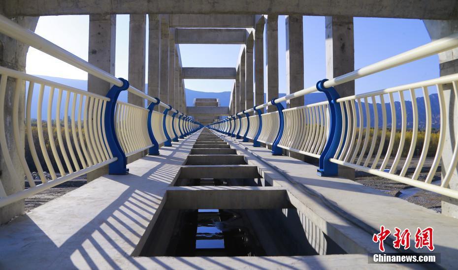 10月16日,青海省海南藏族自治州貴德縣拉西瓦灌溉工程中建設的渡槽內(nei) 部結構。中新社記者 馬銘言 攝