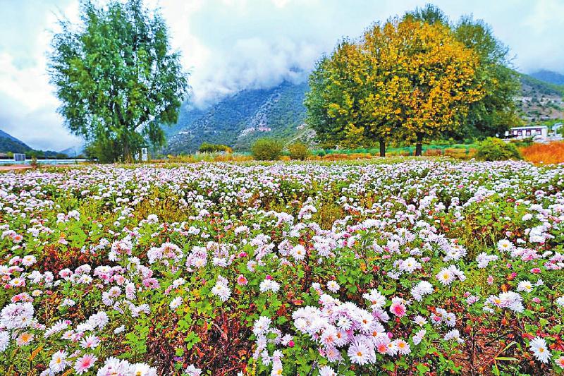 雖入秋已久,但走進位於(yu) 茨巫鄉(xiang) 的得榮縣中藏藥材種苗基地,一片花海十分炫目。“那是藥菊。”基地技術負責人徐汝平操著雲(yun) 南口音介紹。他是雲(yun) 南農(nong) 業(ye) 龍頭企業(ye) 、麗(li) 江華麗(li) 生物開發有限公司的代表,來得榮已有兩(liang) 年多。